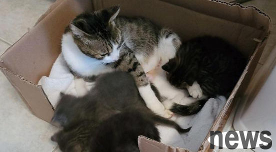 As a result, Jeffrey had just decided to adopt this stray cat, and an interesting scene happened. Two little kittens appeared behind the cat.