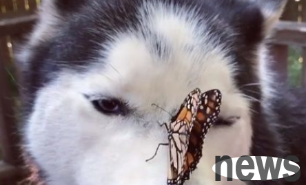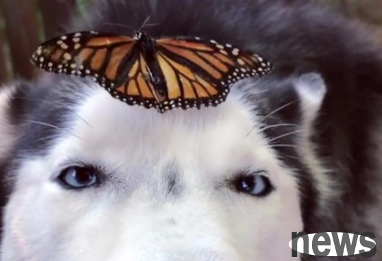 There is a family abroad who has four huskies and has set up an IG account for them to record their lovely daily life. One day, the owner photographed one of them, Cymber, with a butterfly flying on her face. She was so dumbfounded that she didn’t know what to do. The cute and overwhelmed expression was exactly Yueyue’s classic expression~