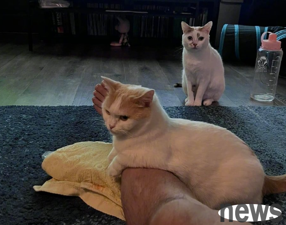 What’s even more amazing is that when the two cats lay on his lap at the same time, the cat was unable to move at all.
