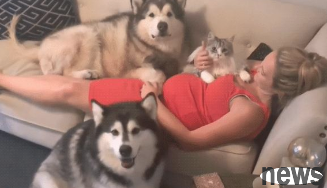 Then it got close to the protruding abdomen of its owner, and put its head on it cautiously, looking very cautious. Then, as if it knew for sure that there was a baby inside, it sniffed and sniffed the owner's abdomen.