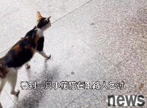 At first, the cat kept staring at the passers-by. It would take a second look at anyone holding food in their hands, but its pleading gaze was ignored by everyone, like an invisible cat.
