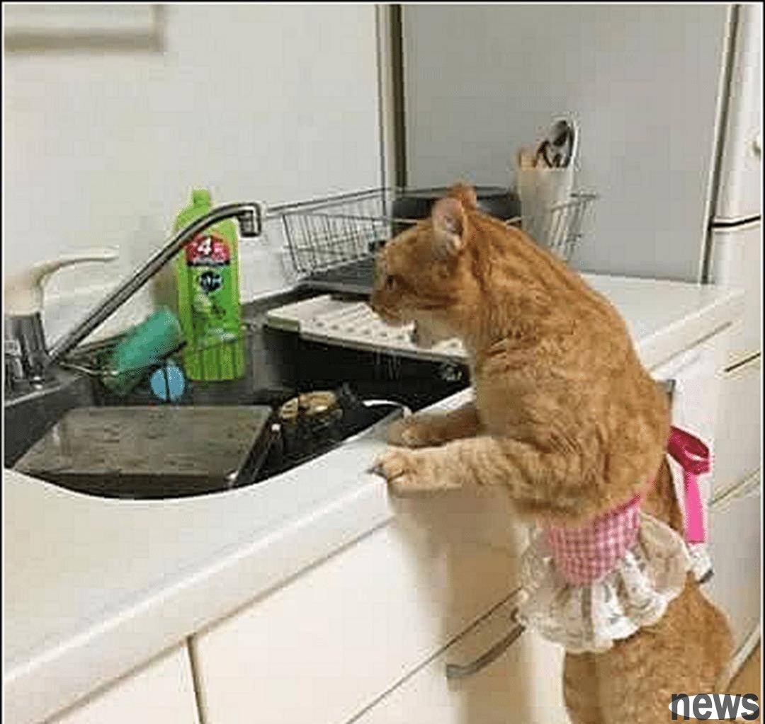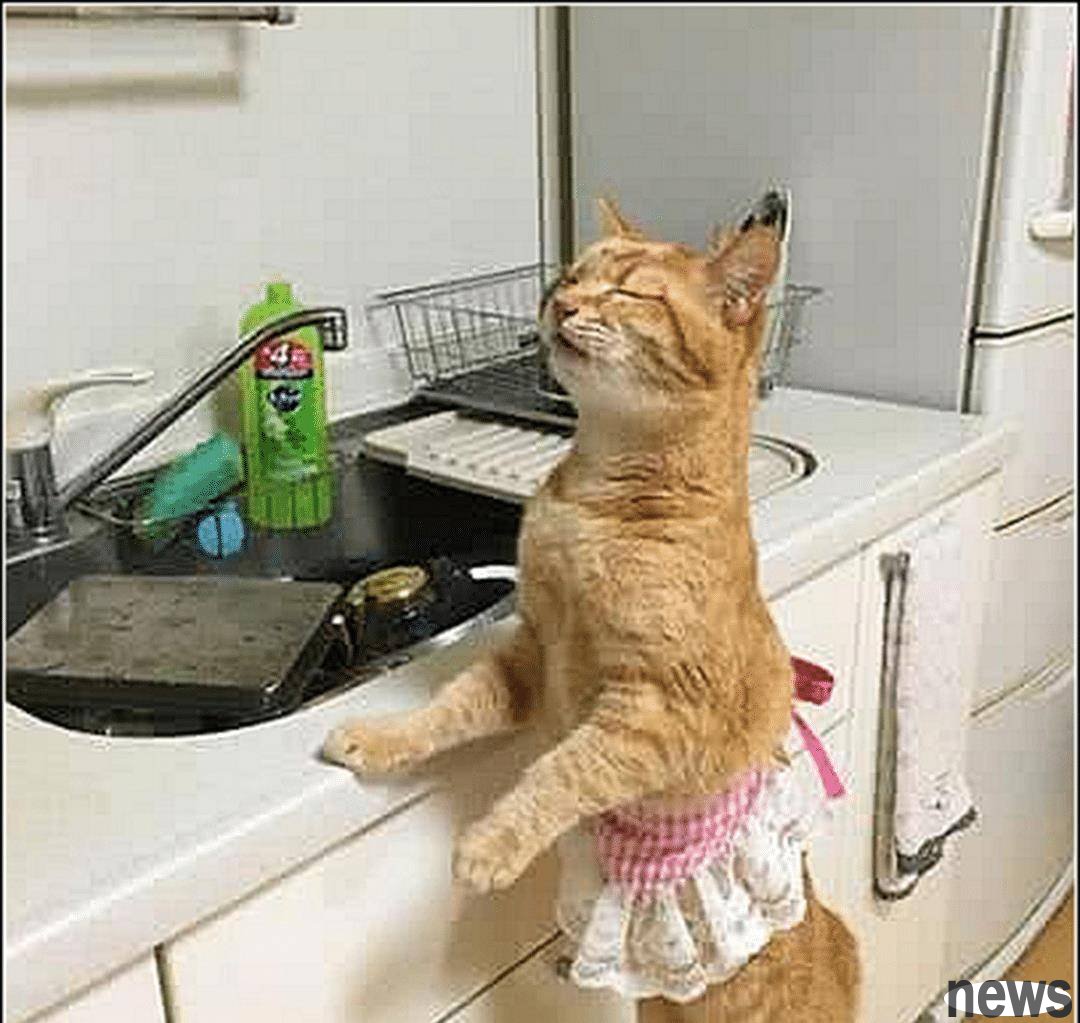 When I arrived at the kitchen, I saw my orange cat wearing an apron, which looked like a housewife, with a comfortable expression as if I was smelling the fragrance of the food I was cooking. It turns out that my cat is so capable, and the principle of having enough food and clothing is fully reflected in the cat, but the owner is still worried that the cat will be unsafe and feels very guilty.