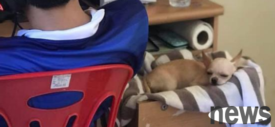 The little master rarely goes home because he lives on campus. Summer vacation has just begun, so this Chihuahua has been by his side, even when the master is playing games.