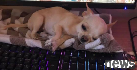 After that, the Chihuahua lay quietly in front of the keyboard, looking at the face of its little master, as if it couldn't get enough of it. Finally, sleepiness set in, and the Chihuahua couldn't hold on any longer. He slowly closed his eyes and fell asleep.