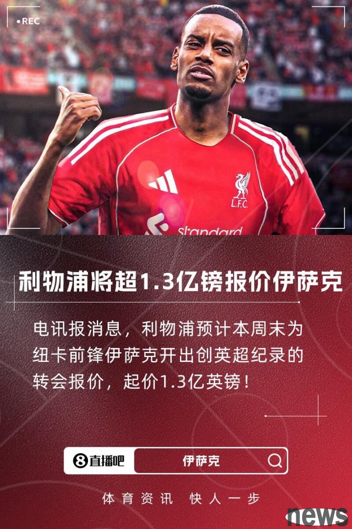 Newcastle's price for Isaac is as high as £150 million, and sources say Liverpool's basic offer is expected to be £130 million, plus surcharges and bonuses, the total price of the transfer will break the Premier League transfer fee record.