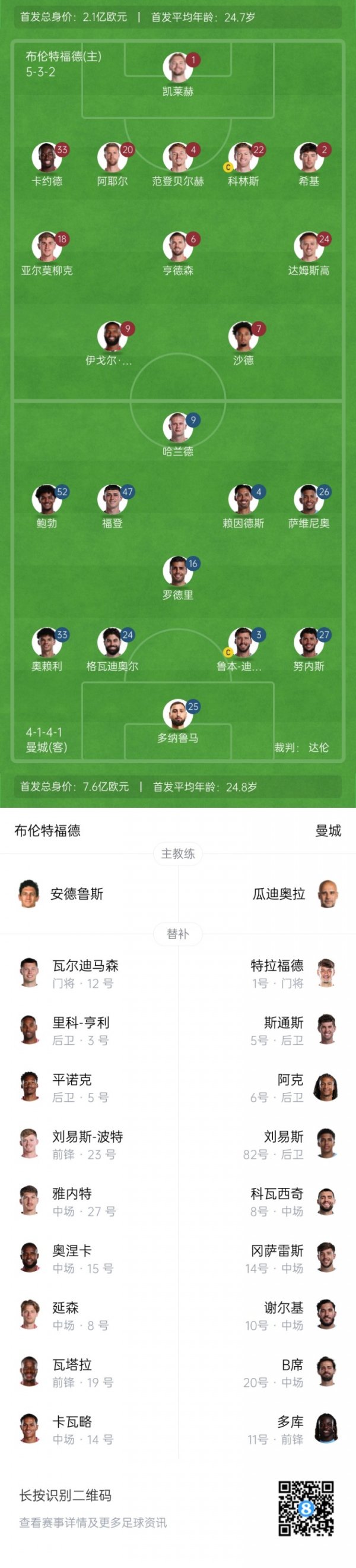 defeated Brentford 1-0 at Manchester City, and Haaland scored a goal.