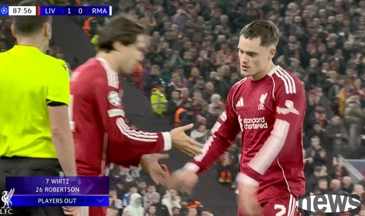 Liverpool made another adjustment, Wirtz and Robertson were replaced, and Kyle Kaez and Chiesa came on.