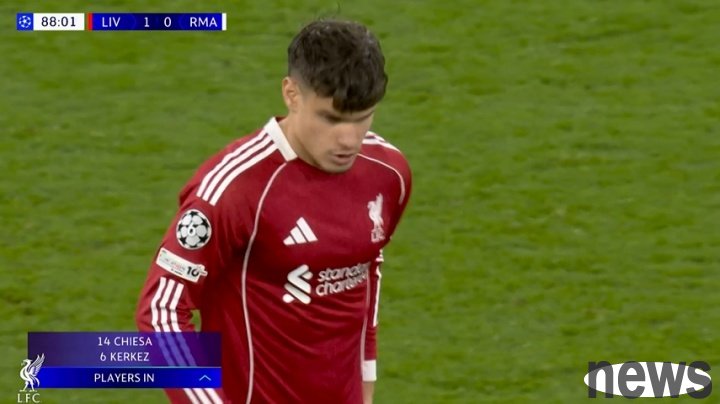 In the 89th minute of the fourth round of the Champions League between Liverpool and Real Madrid, Liverpool once again made two substitution adjustments. Wirtz and Robertson were replaced, and Kyle Ketz and Chiesa came on as substitutes.