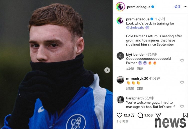 At a press conference on Monday, Chelsea coach Maresca said: "We are not sure about the specific time, but Palmer will definitely return soon. He has already stepped onto the lawn for ball training and feels good at the moment."