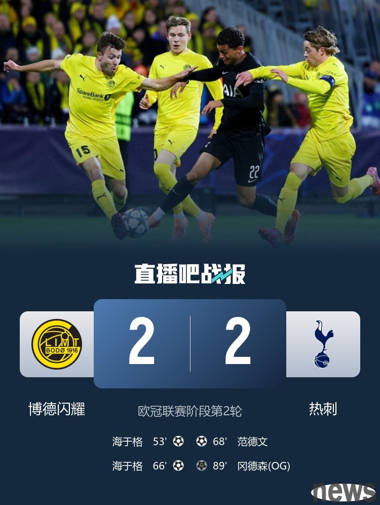 Yesterday, Liverpool lost 0-1 to Galatasaray, Chelsea defeated Benfica 1-0, and Tottenham tied Bode 2-2.
