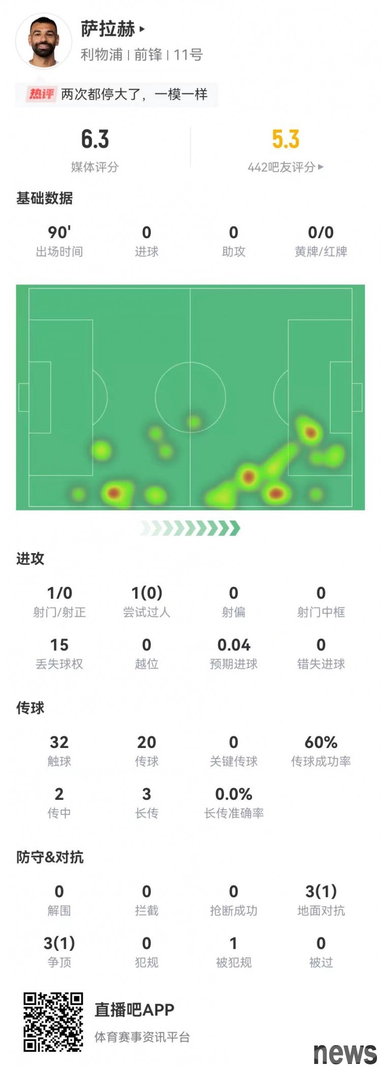 Really old? Salah scored 1 shot 0 positive +0 key pass 2 pass &3 long pass &1 out of the way all failed 6.3 points