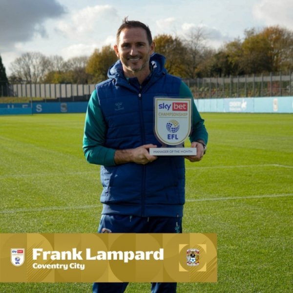 According to official news, Coventry coach Frank Lampard was elected as the best coach of the British Championship in October.