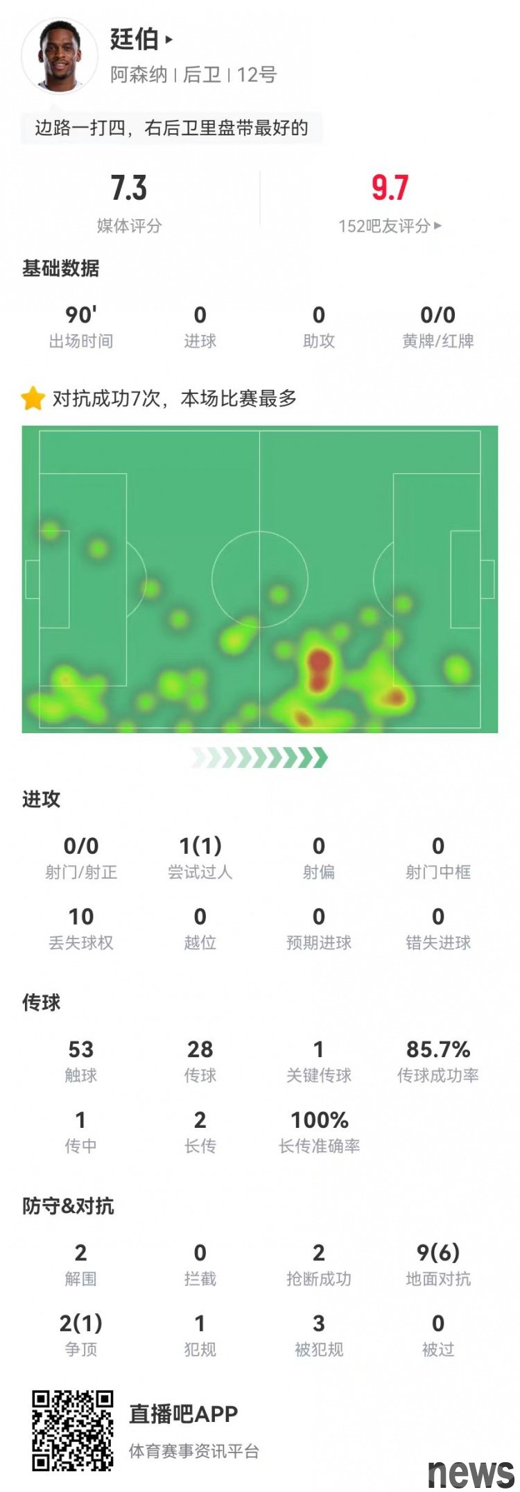Arsenal defeated Crystal Palace 1-0 in this round of the Premier League. Timber's statistics for this game are as follows: