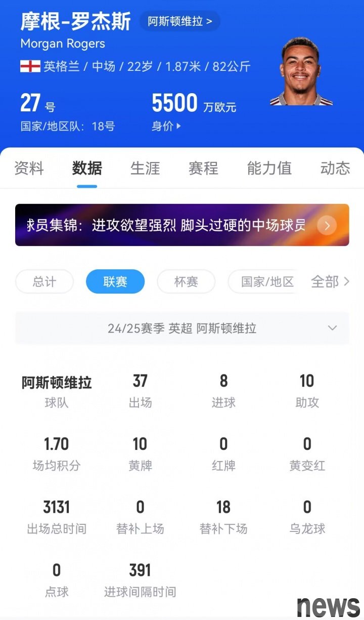 22-year-old Rodgers played 37 Premier League games for Aston Villa last season, contributing 8 goals and 10 assists. The current German turnover price of the player is 55 million euros.
