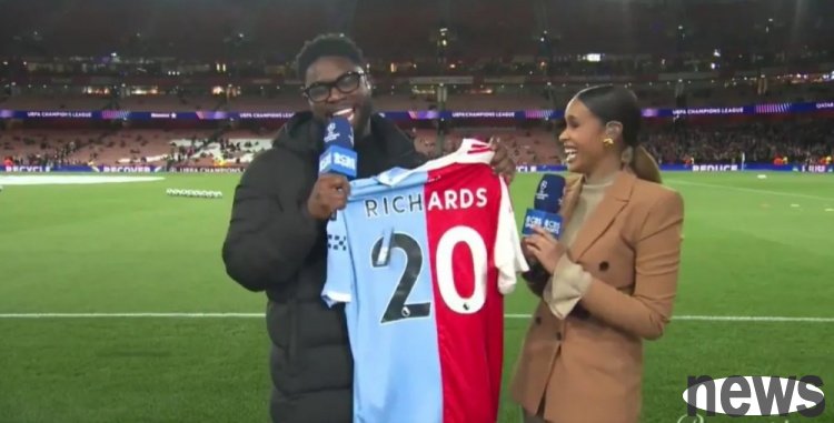 The 37-year-old Richards was invited to commentate on the Champions League match between Arsenal and Atletico Madrid. When he stood in front of the camera, the broadcaster gave him a special gift.